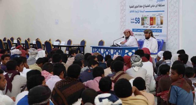 في أجواء تنافسية بين طلاب العلم من قطاع حلقات التحفيظ من (58) جامعاً مشاركاً في التصفيات النهائية لبرنامج مسابقة ابن عباس العلمية في حفظ المتون العلمية (النسخة الربعة ) وفي نتائج إيجابية لجهود المساجد المشاركة وطلاب العلم في الإجازة الصيفية واعتكافهم على حفظ المتون العلمية التأصيلية والحفظ المتقن لها , شهد جامع ابن عباس بفوة – المكلا , تنافساً وازدحاماً للدخول إلى الاختبارات للتصفيات النهائية في سبعة متون علمية موزعة على ثلاثة مستويات (زبدة المبادئ الإيمانية , زبدة المبادئ الفقهية , الأربعون النووية , الأجرومية , منظومة الإلبيري, تحفة الأطفال والبيقونية ) وذلك صباح يوم السبت 14 / ذي القعدة /1444هـ الموافق 3 / 6 / 2023م