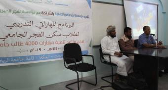 مؤسسة ابن عباس العلمية بالشراكة مع مؤسسة الفجر الخيرية الاجتماعية يدشنان برنامج تنمية مهارات (4000) طالب جامعي في سكن الفجر الجامعي.